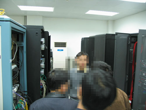 四楼信息中心机房,老师说可以照,我们就没客气地按下了快门,最里面的就是机柜所在地,