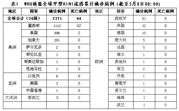 新华网北京5月4日电 以下是截至北京时间5月4日17时,世界卫生组织发布的有关国家和地区甲型H1N1流感疫情最新数字,括号内为有关国家和地区自己公布的数字。