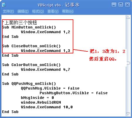 首先打开QQ安装目录,找到“NewSkins”的文件夹进入,点“QQ2006”文件夹(不同版本这个名称不一样,不过就一个文件夹),点进去找到“VBScript”的文件,用记事本打开,修改如图内容,保存。不过要让上述功能有效,只能使用“QQ2006”皮肤。保存好文件,重启QQ即可。