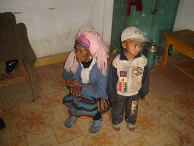 照片中的老人是我们的病人,她是佤族,不会听汉话,还好和我们去的乡卫生院医生会一点佤话。象这样的佤族村寨的督导工作一定得带“翻译的”。