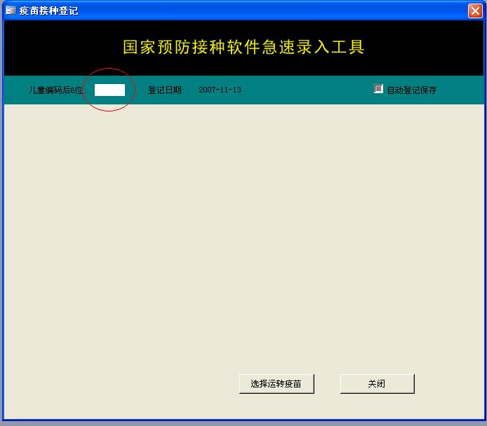 5、冷链运转时 在这里输入儿童编号后8位,就可以自动登记接种记录了,呵呵
