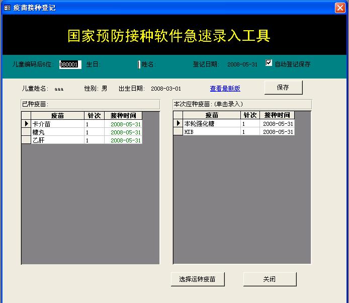 国家预防接种软件急速录入工具1.30(测试版)