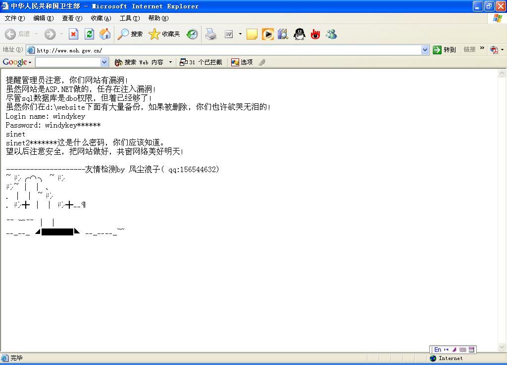 » 卫生部网站遭袭【附图】